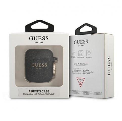 Оригинален калъф Guess Glitter за AirPods 1 / AirPods 2 слушалки - черен