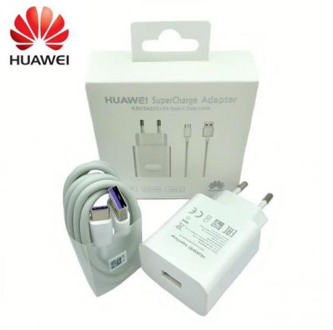 Комплект зарядно устройство - мрежови адаптер(66W) и кабел(USB Type-A/USB Type-C) с функция за бързо зареждане Huawei SuperCharge.
