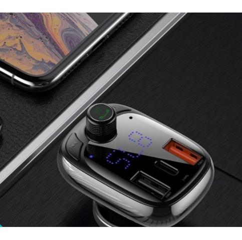 MP3 - FM Wireless transmiter BASEUS T-Type Bluetooth 5.0 / 2xUSB, Type C, QC 3.0, PD, Micro SD / FM трансмитер за кола